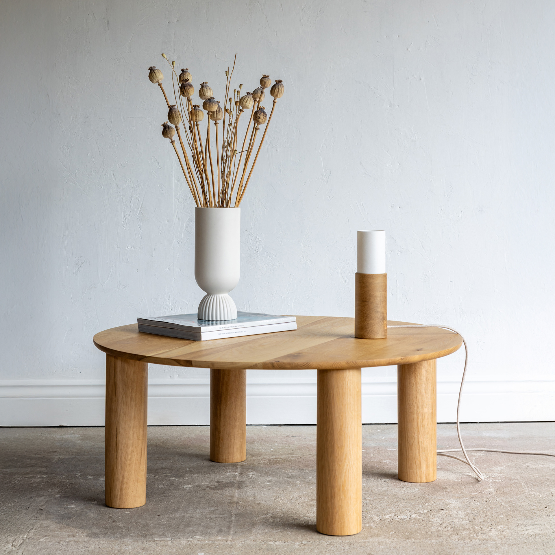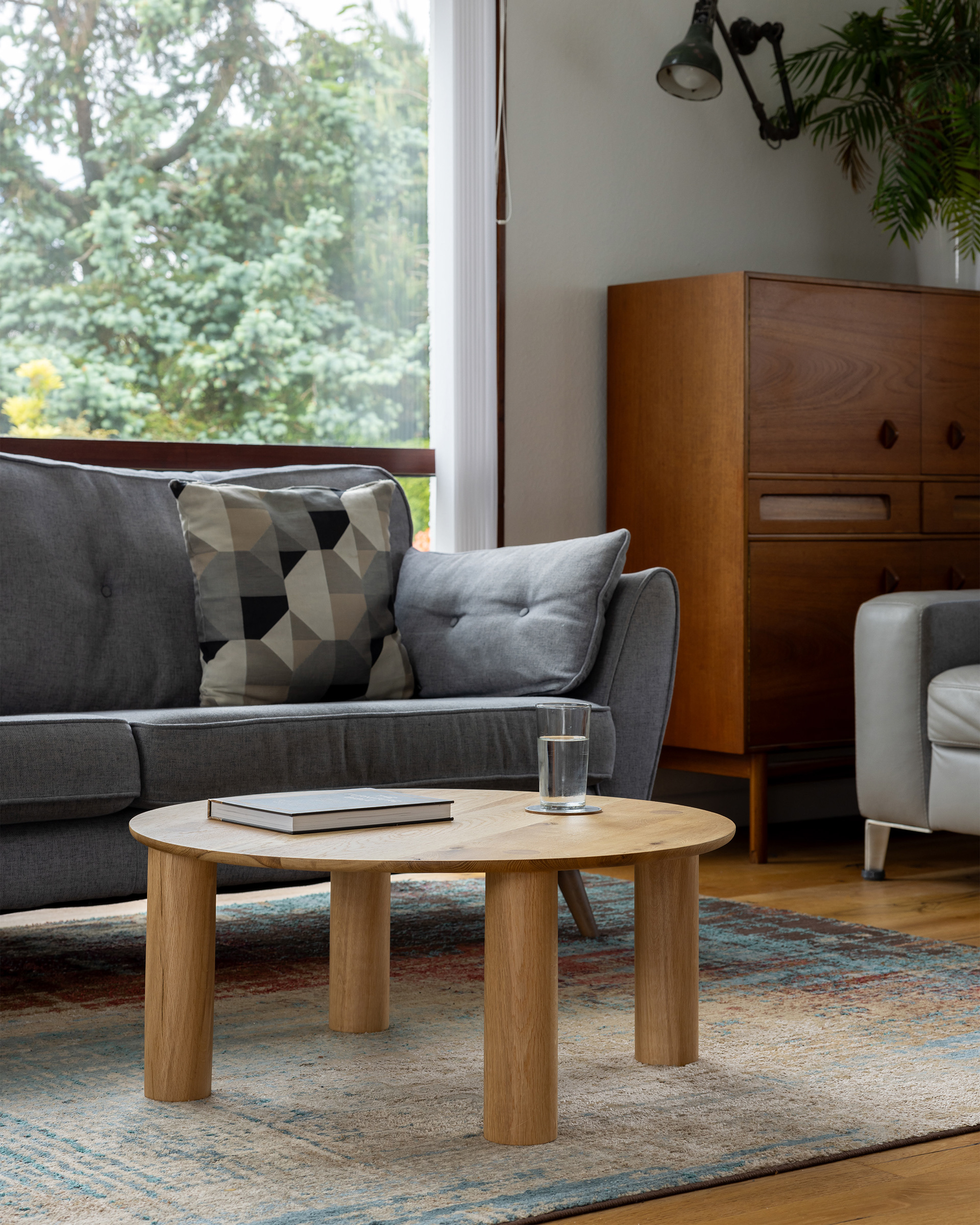 I designed the Lounge Table as a “happy everywhere” coffee table — the sort of piece that settles into a room without fuss, but still earns its place. It has chunky legs and a slim top: a simple design with a welcoming character. It’s built from locally grown Scottish oak.